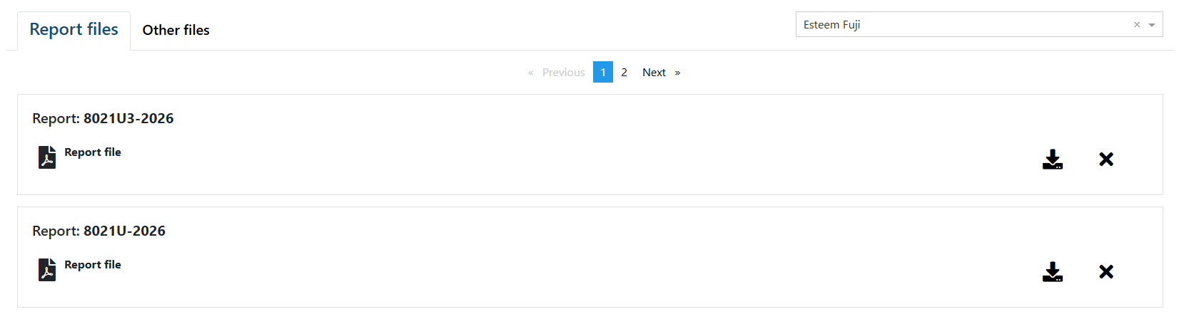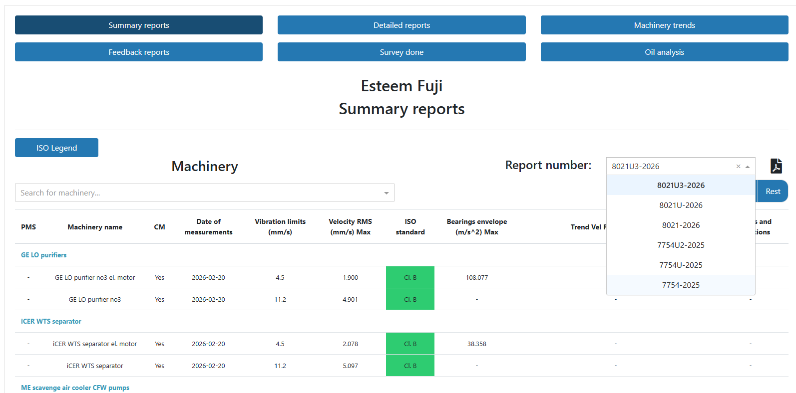 EN: W CBMie nie ma raportu Esteem Fuji 8021U2-2026: ani w zakładce summary reports, ani w report files, ani w List of machinery with alerts.