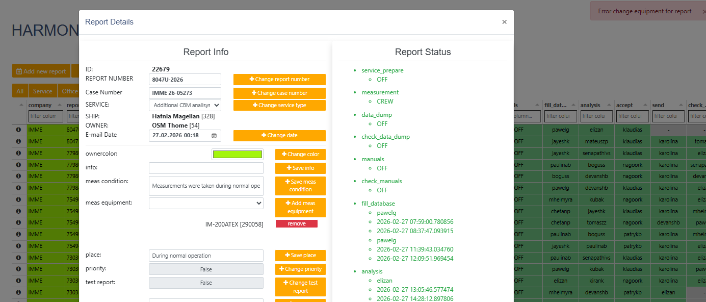 w harmonogramie jest ustawiony measurement equipment ze ejst to ATEX a w tabelce w raporcie generuje pusto