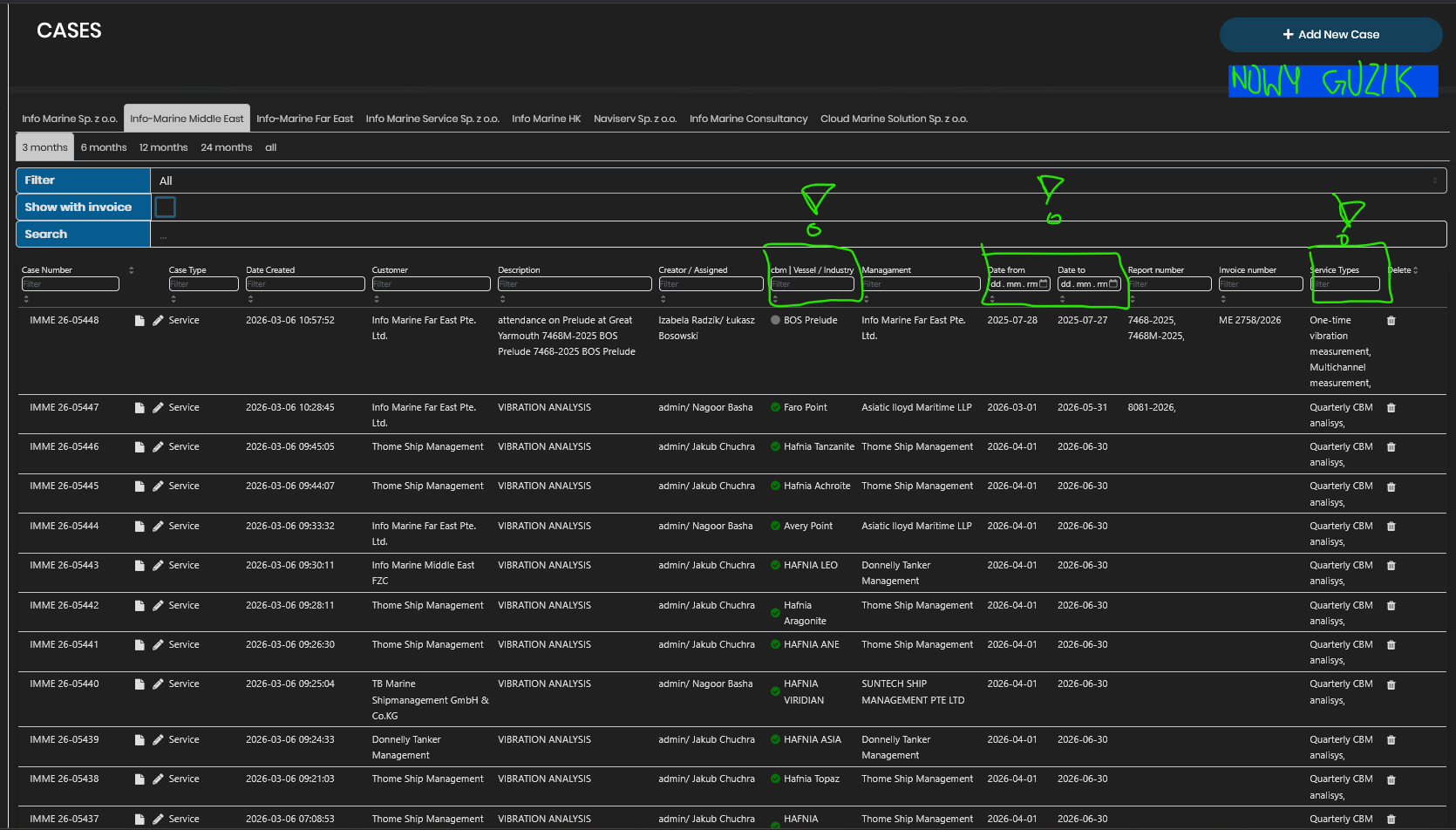 Izabela Radzik: poproszę o możliwość eksportu do pliku excela wygenerowanego raportu ze stony case list - po przefiltorowaniu np. po nazwie statku , czy poszczególnym typie usłygi/ zakresie dat