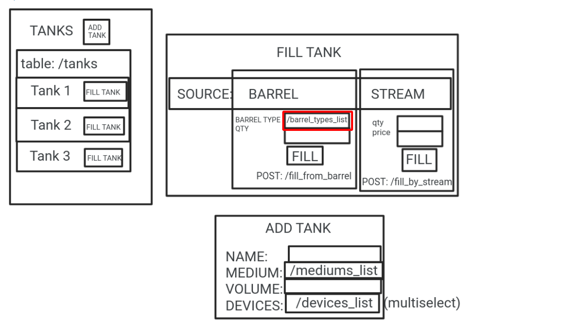 type powinno pobierać z "/barrel_types_list" nie ma takiego endpointu zdefiniowanego żeby się pod niego podpiąć, a tak jak pisałem wcześniej nie moegłem znaleść zależnośći pomiedzy medium na barell_types żeby wyciągnąć przefiltrowaną listę.
