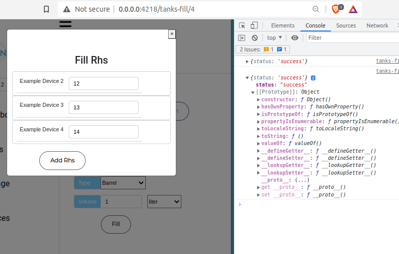 Po dodaniu rhs przy fill tank, po dadaniu backend zwraca status: "success" ale okno się nie zamyka.
