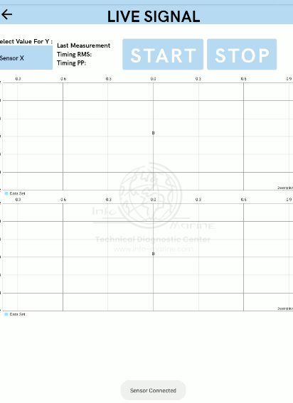 Na początku przyciski start, stop i wybor sensora powinny być na szaro nieaktywne