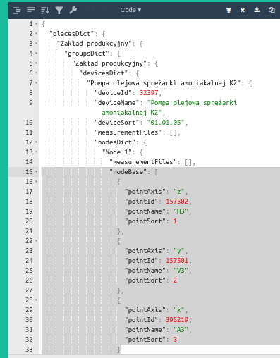 Po rozwinięciu Node przy nazwach punktów powinna pojawiać się też oś. Informacje są w pliku struct