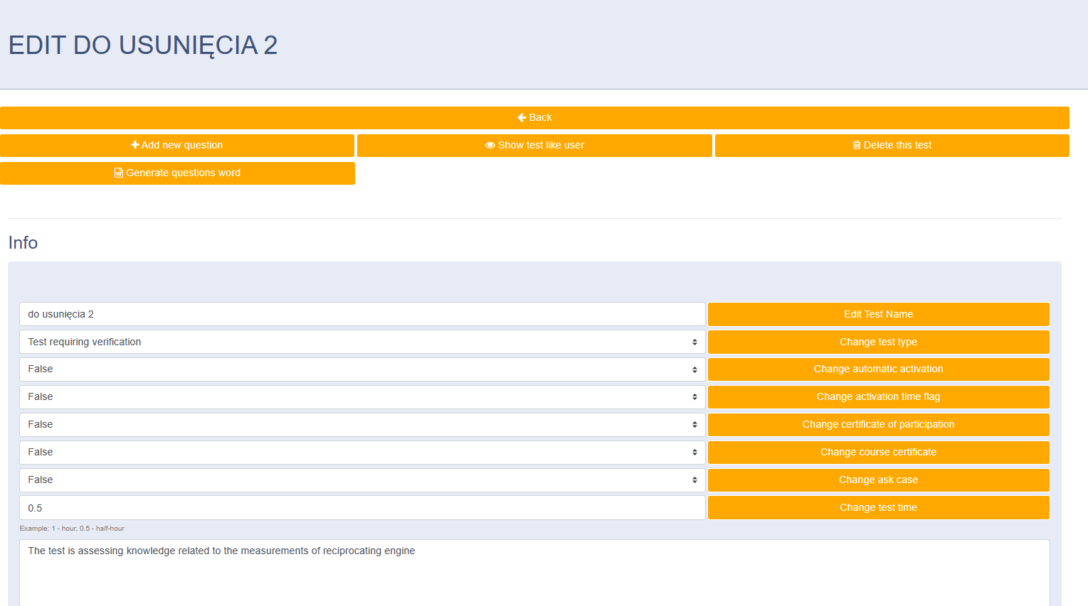 opene-learning: Usuwanie testów