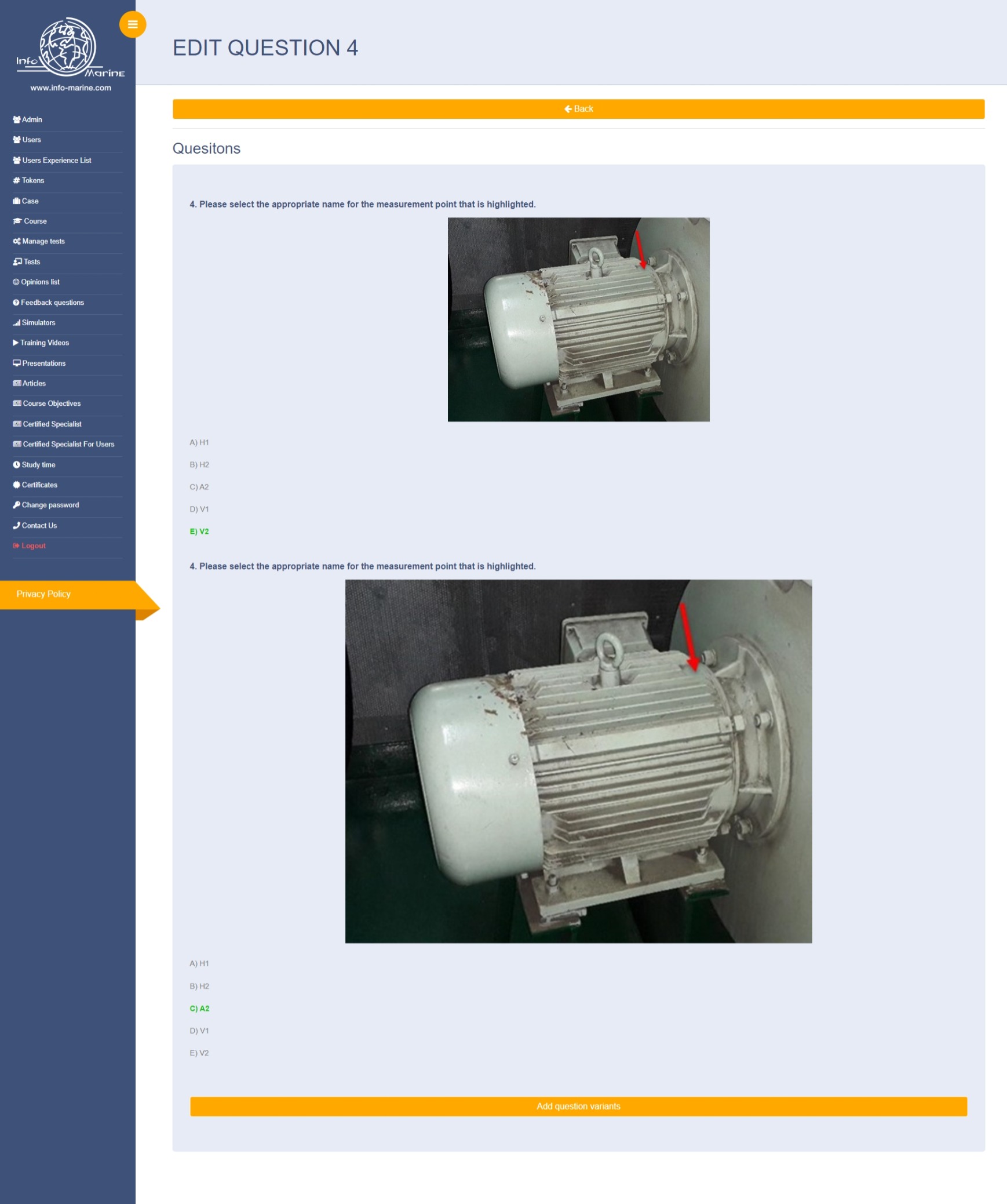 PB1: rozmiar zdjęć można edytować tylko przy tworzeniu nowego pytania i przy edytowaniu pytania jak jest jeden wariant. Jeśli jest więcej niż 1 wariant to nie można ustawić rozmiaru wklejonego zdjęcia. Przykład test BASIC OPERATION OF CONDITION MONITORING SYSTEM. Pytanie 4.