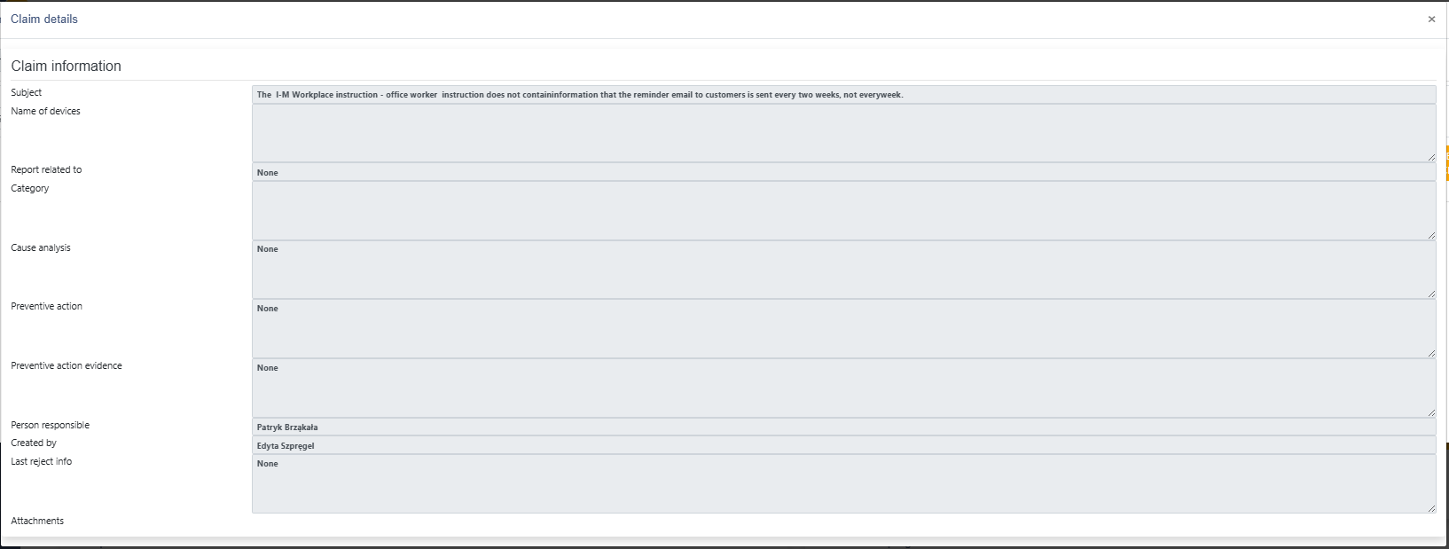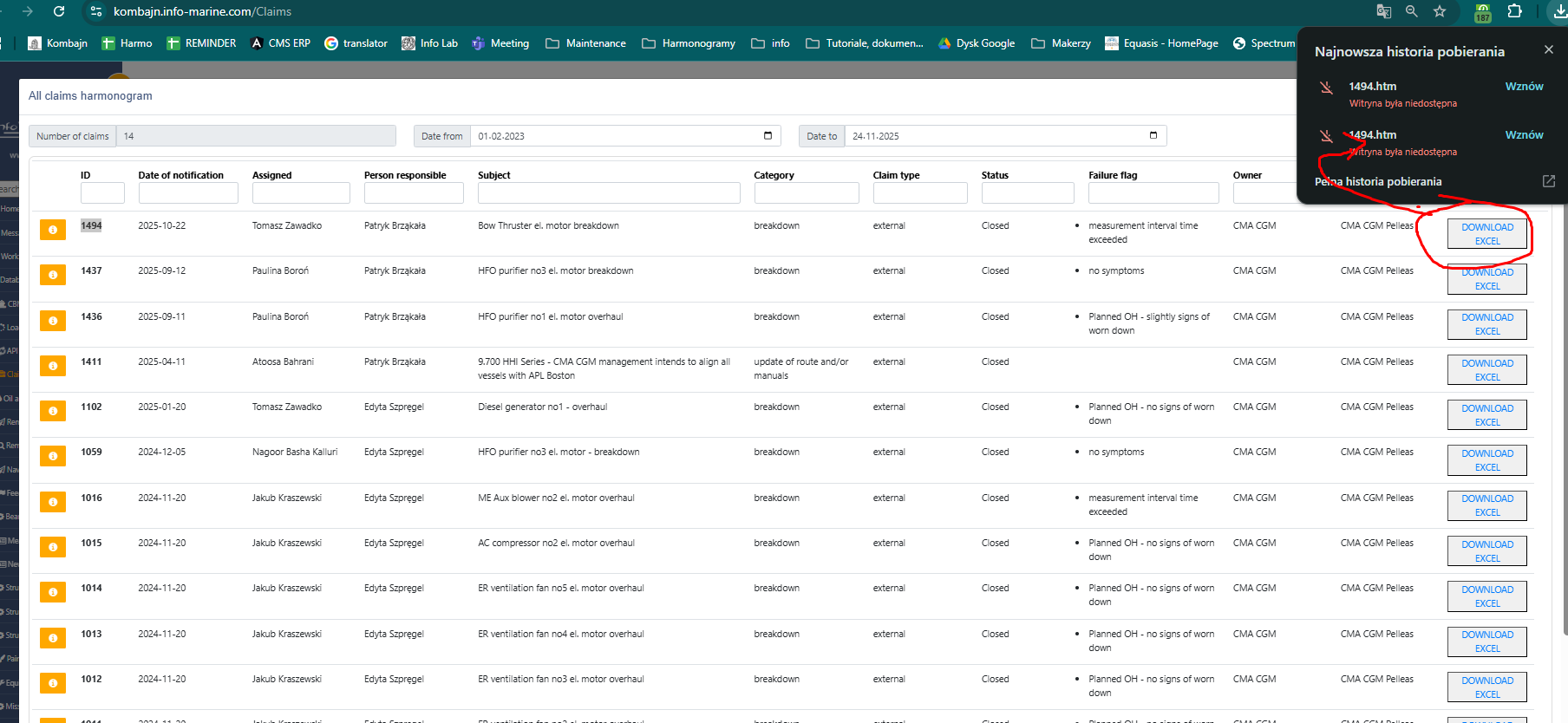 TZ: Geneowanie DSa w zakładce claims nie działa + po naciśnięciu "i" w claim harmonogram nie ma wszystkich danych - brakuje np. description.